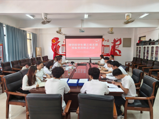 2025年12月11日,我院学生第三党支部在9404会议室召开预备党员转正大会,讨论关于预备党员陈晓君等三位同志的转正问题,党支部书记文静同志主持会议。